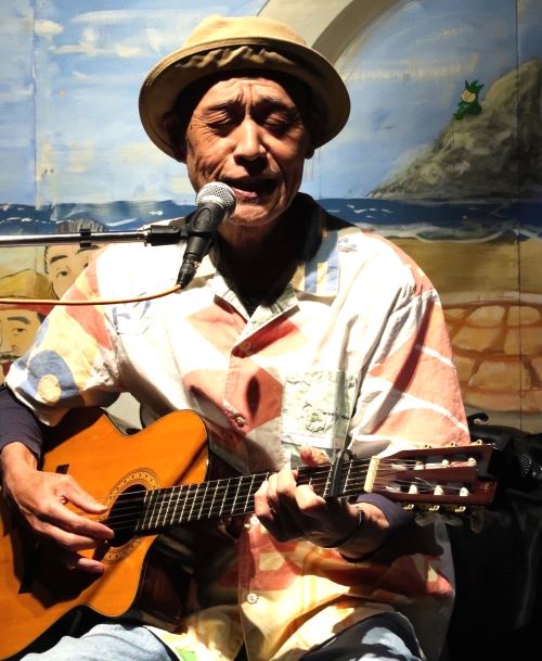 憂歌団「おそうじオバチャン」「嫌んなった」の作詞家として、また結成46年、名古屋の老舗バンド『第8旅団』では、「はらぺこ」「ど忘れ」「はらわた」など珍奇な曲をいっぱい作って、みんなを笑わせたりビビらせたりしています。